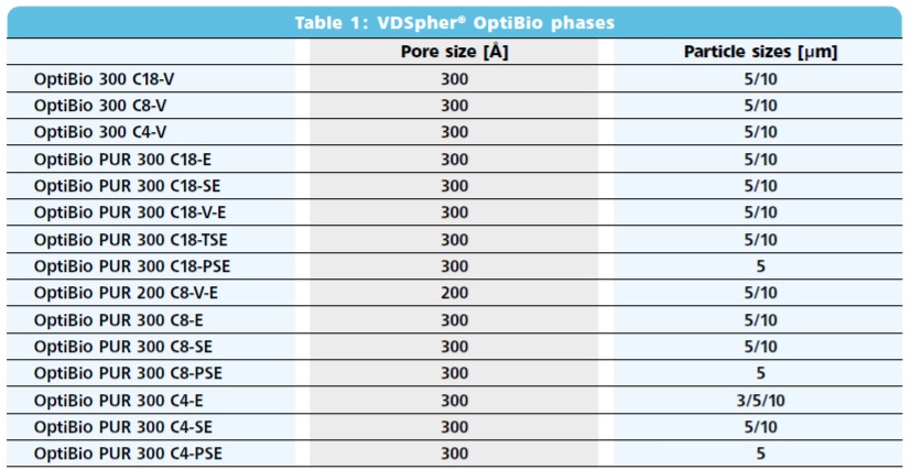 VDSpher OptiBio 生物大分子液相色譜分離柱